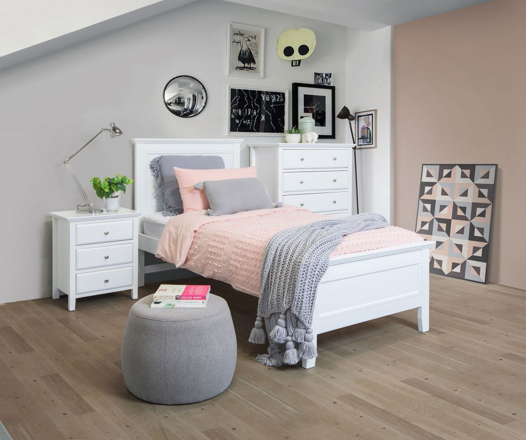 Ballina 3 Piece Bedroom Suite: 1 x Bed Frame; 1 x Bedside Tables; 1 x Tall Boy —– Size Single or King Single
