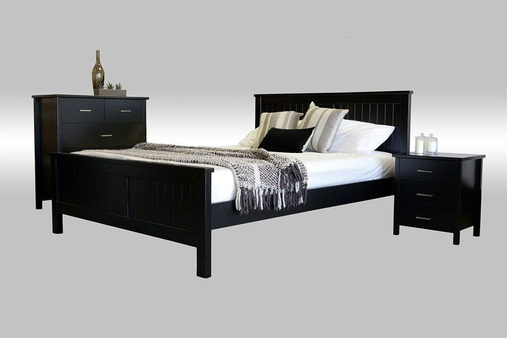 Brighton 4 Piece Bedroom Suite: 1 x Bed Frame, 2 x Bed Side Tables, 1 x Tallboy