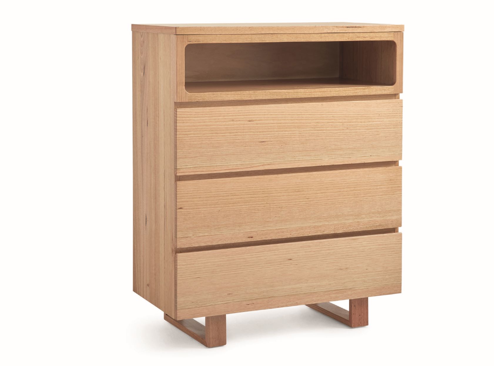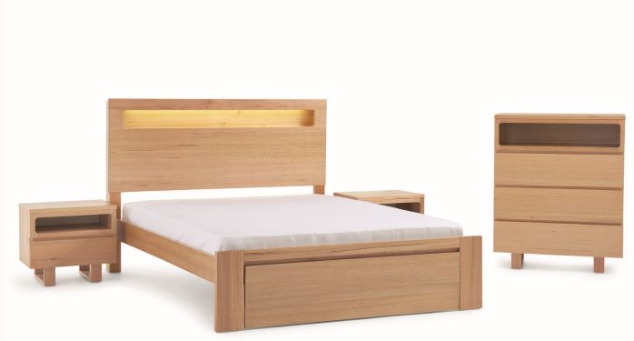 GLOW 4 Piece Bedroom Suite: 1 x Bed Frame, 2 x Bedside Table and 1 x Tallboy