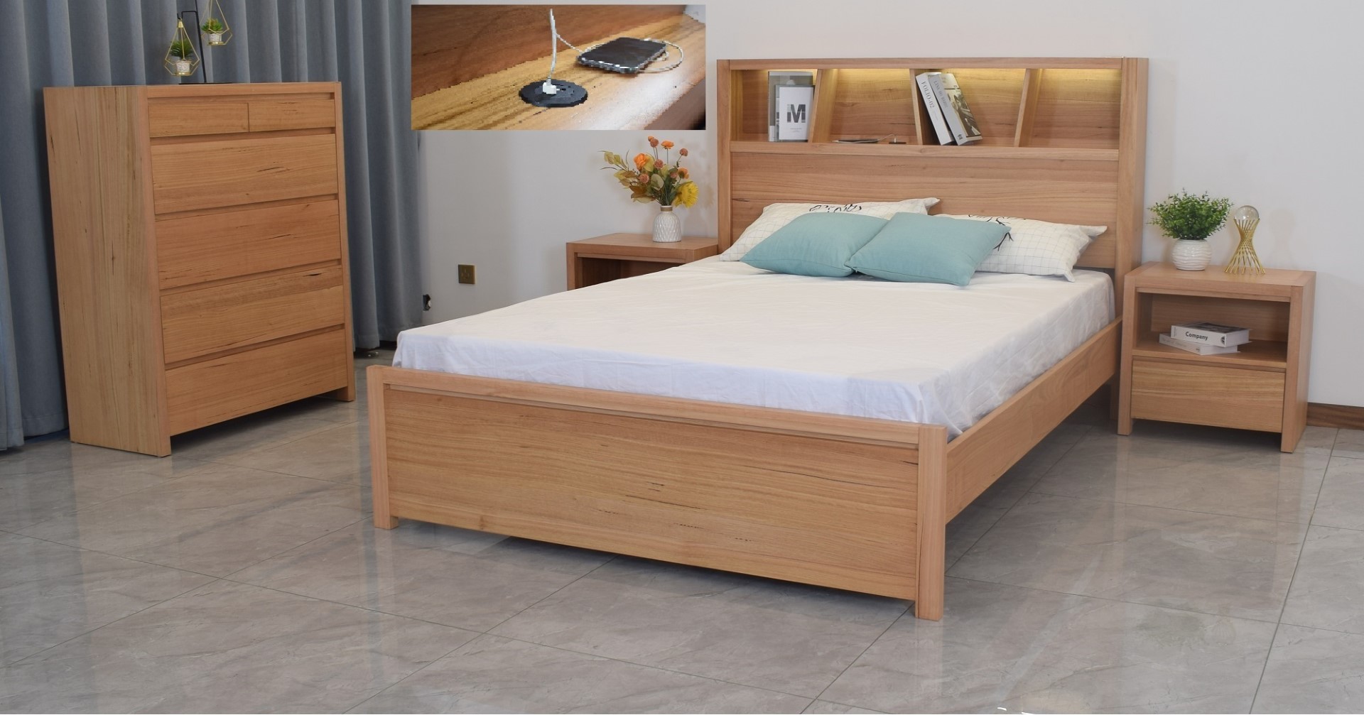 Hydee 4 Piece Bedroom Suite: 1 x Bed Frame; 2 x Bedside Tables; 1 x Tall Boy
