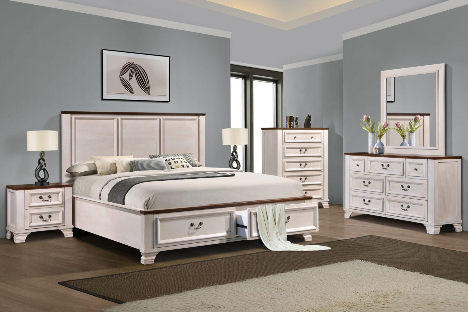 Jennifer 4 Piece Bedroom Suite: 1 x Bed Frame; 2 x Bedside Table; 1 x 5 Drawer Tallboy