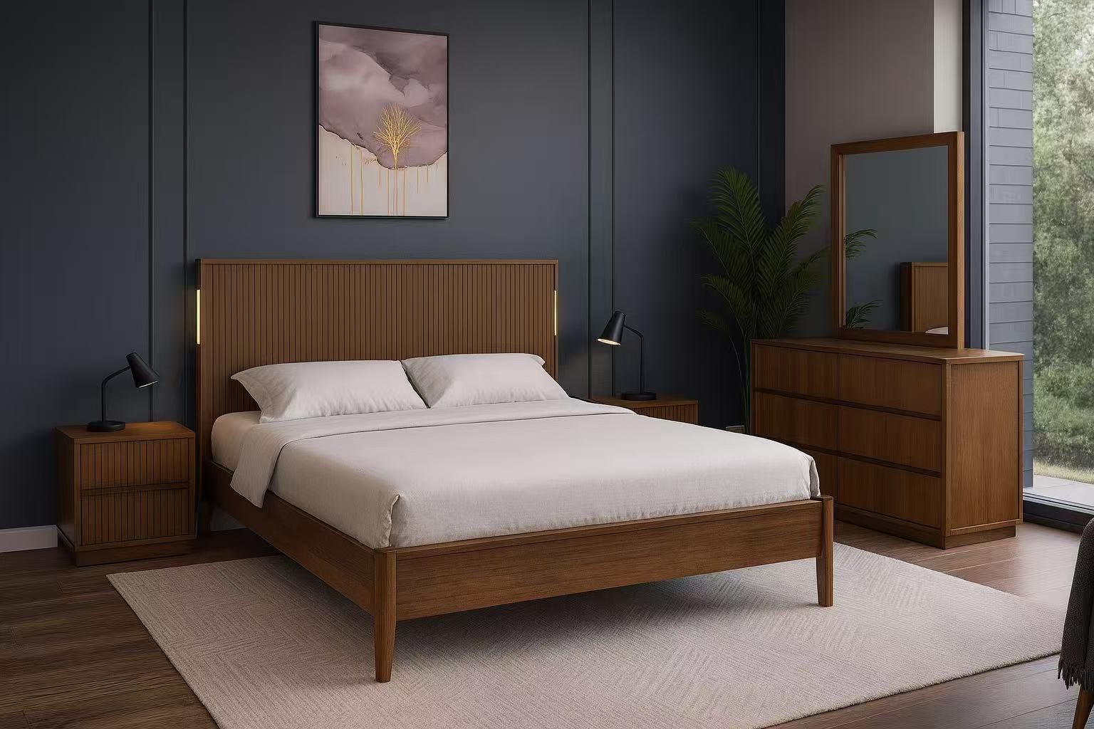 Buy Separately: Bed Frame: Queen: $1290 King: $1390 Bedside Table: $390 Tallboy: $890 Dresser: $890 Dresser Mirror: $290