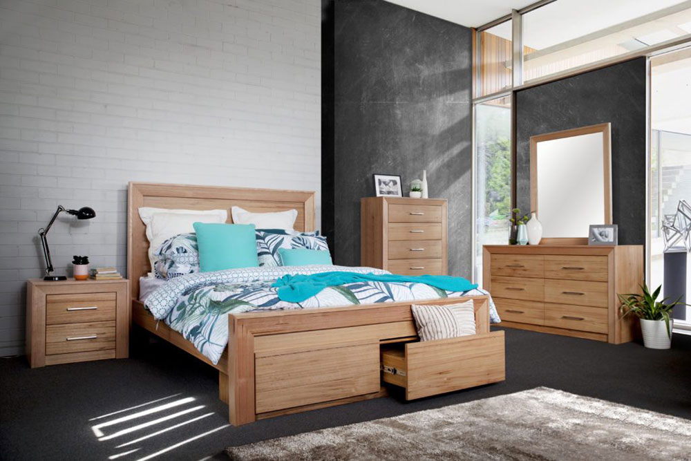 Leura 4 Piece Bedroom Suite: 1 x Bed Frame; 2 x Bedside Table; 1 x Tallboy