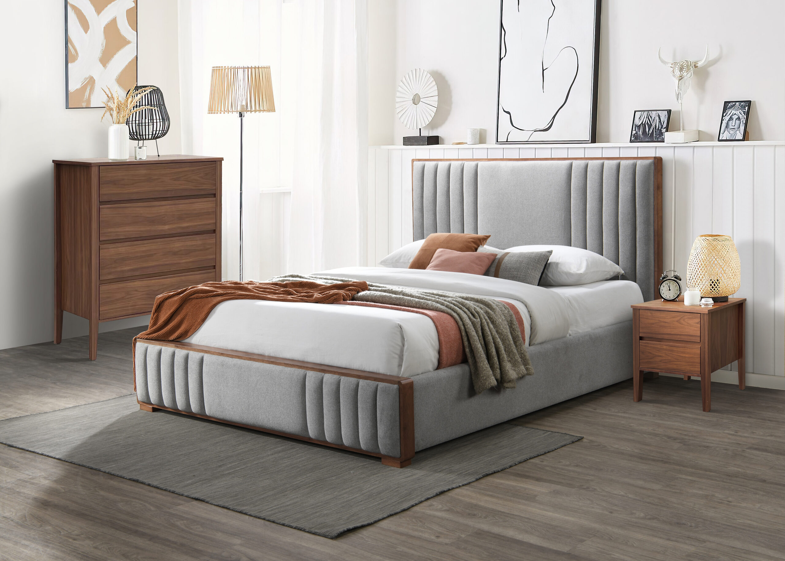 Luxe 4 Piece Bedroom Suite: 1 x Bed Frame; 2 x Bedside Table; 1 x Tallboy