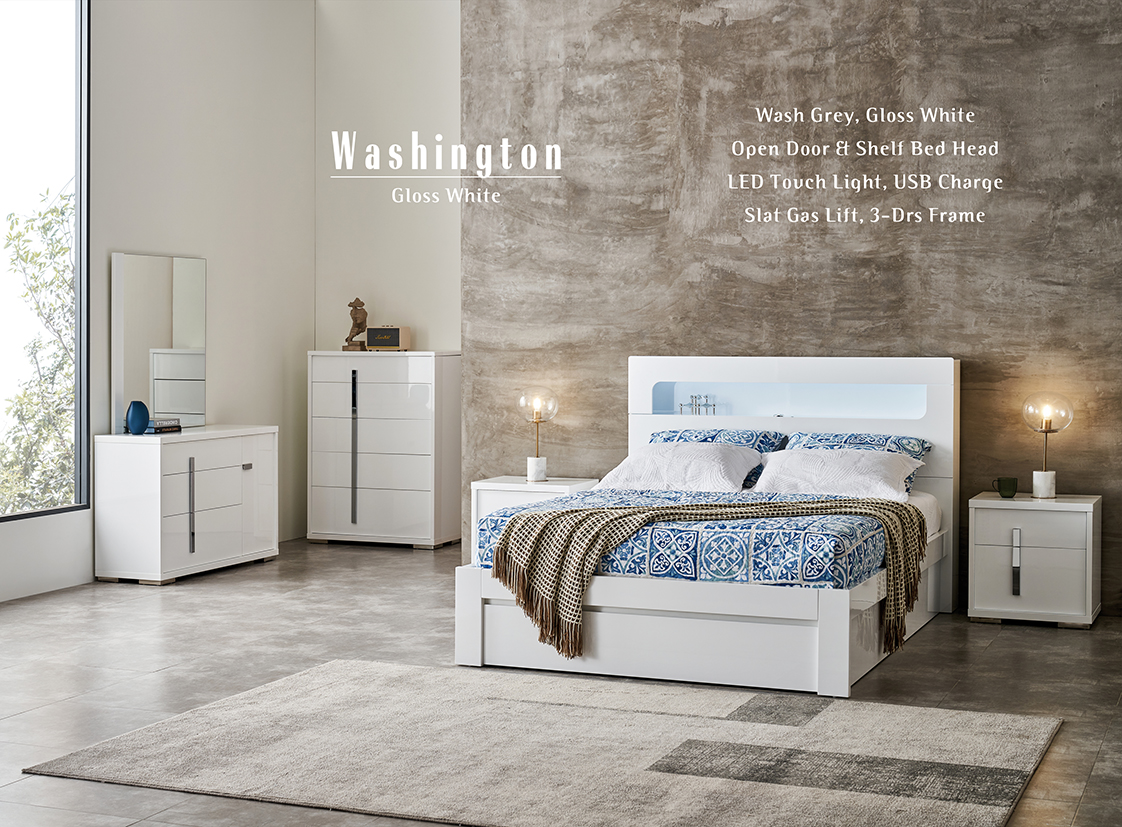 New York 4 Piece Bedroom Suite: 1 x Bed Frame; 2 x Bedside Table; 1 x Tallboy