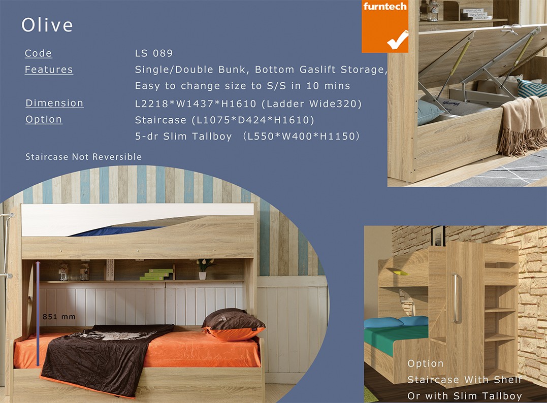 Single – Double Bunk Bed: 2218(L)*1437(W)*1610(H)