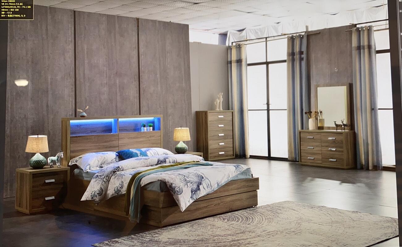 Rome 4 Piece Bedroom Suite: 1 x Bed Frame; 2 x Bedside Table; 1 x Tallboy