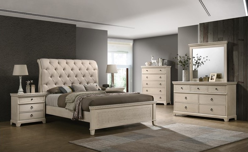 Sausalito 4 Piece Bedroom Suite: 1 x Bed Frame; 2 x Bedside Table; 1 x Tallboy