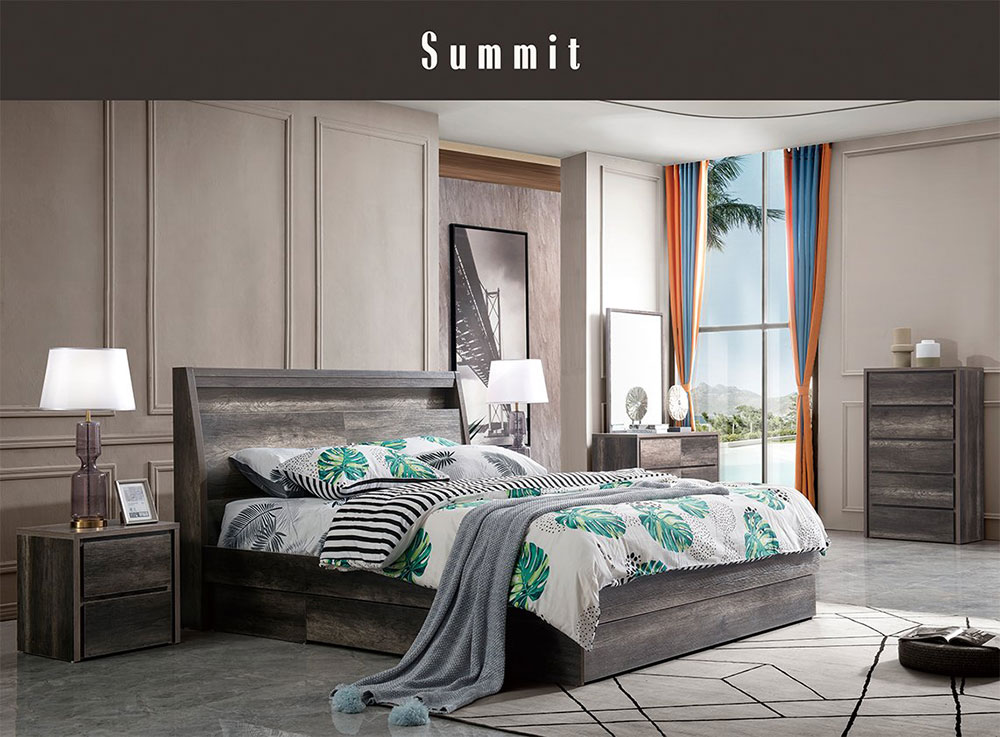 Summer 4 Piece Bedroom Suite: 1 x Bed Frame; 2 x Bedside Table; 1 x 5 Drawer Tallboy
