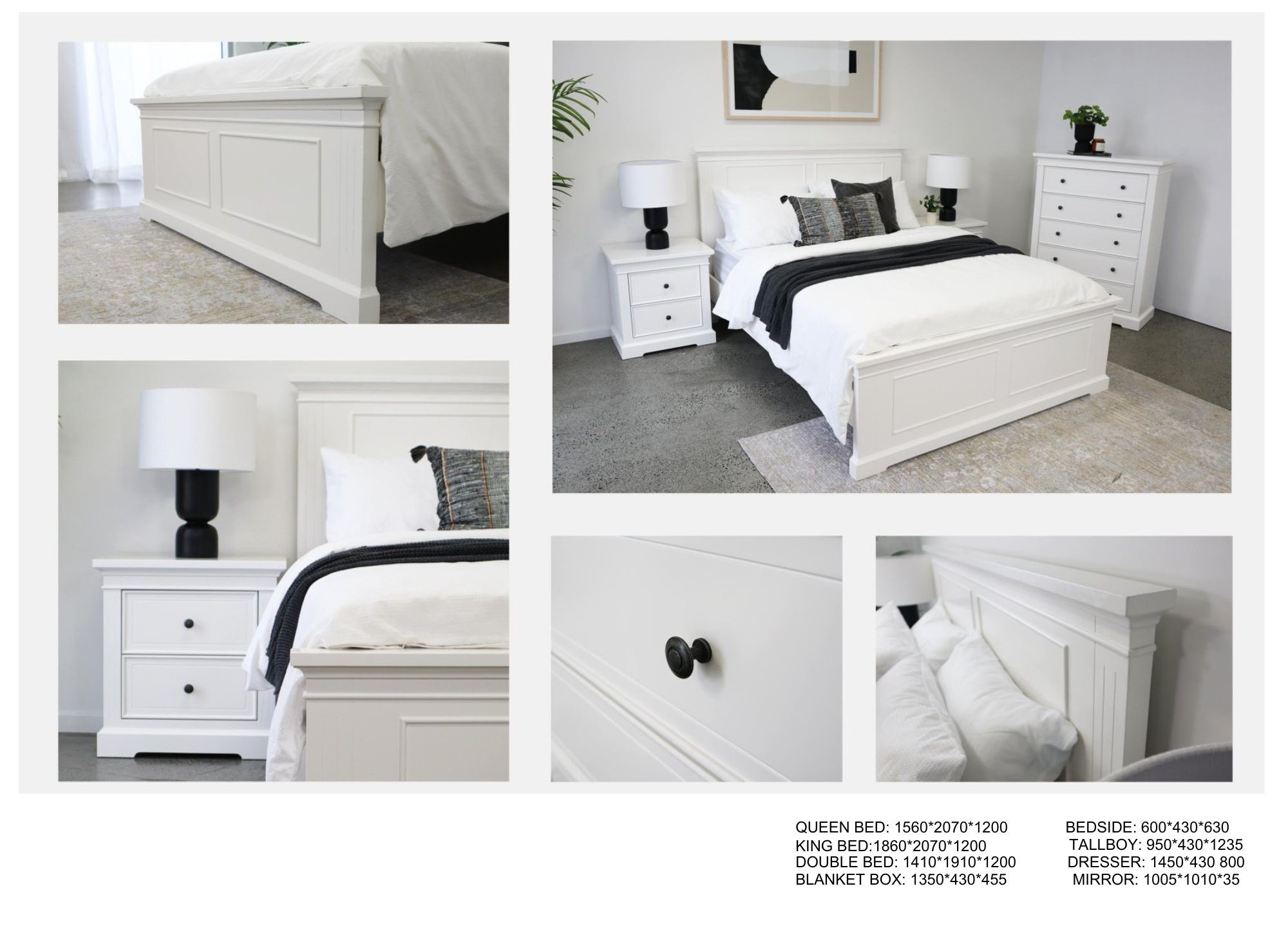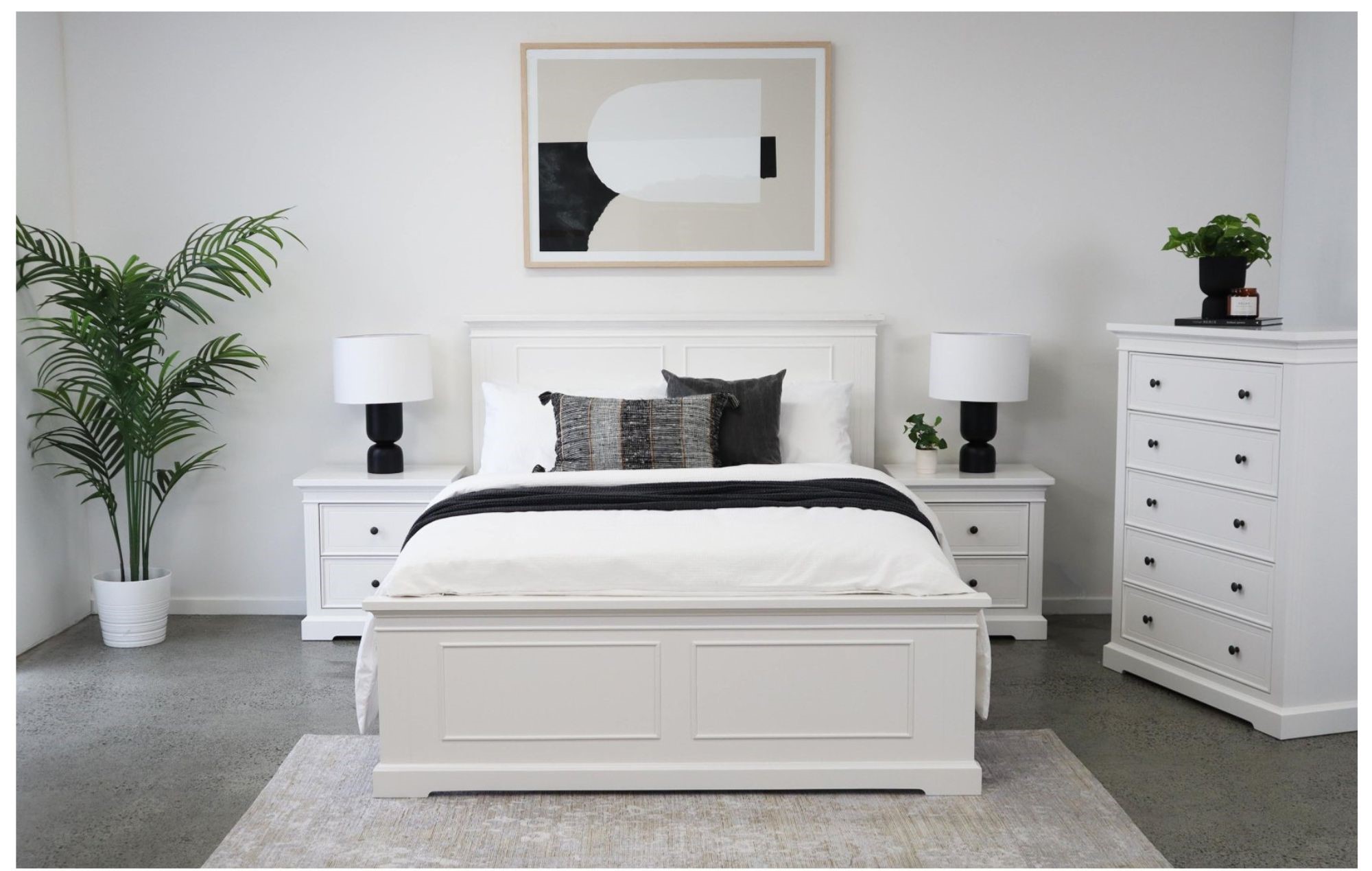 Tosca 4 Piece Bedroom Suite: 1 x Bed Frame; 2 x Bedside Table; 1 x Tallboy