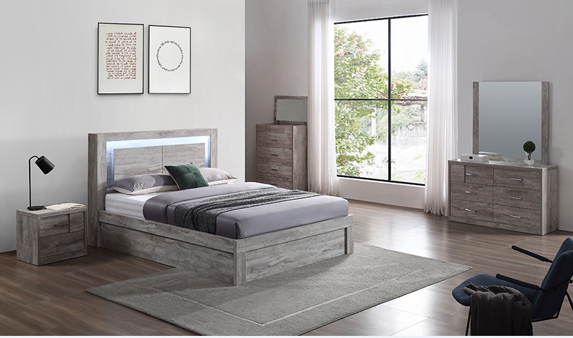 Features: Front Gas Lift; Open Storage Bedhead with LED Light